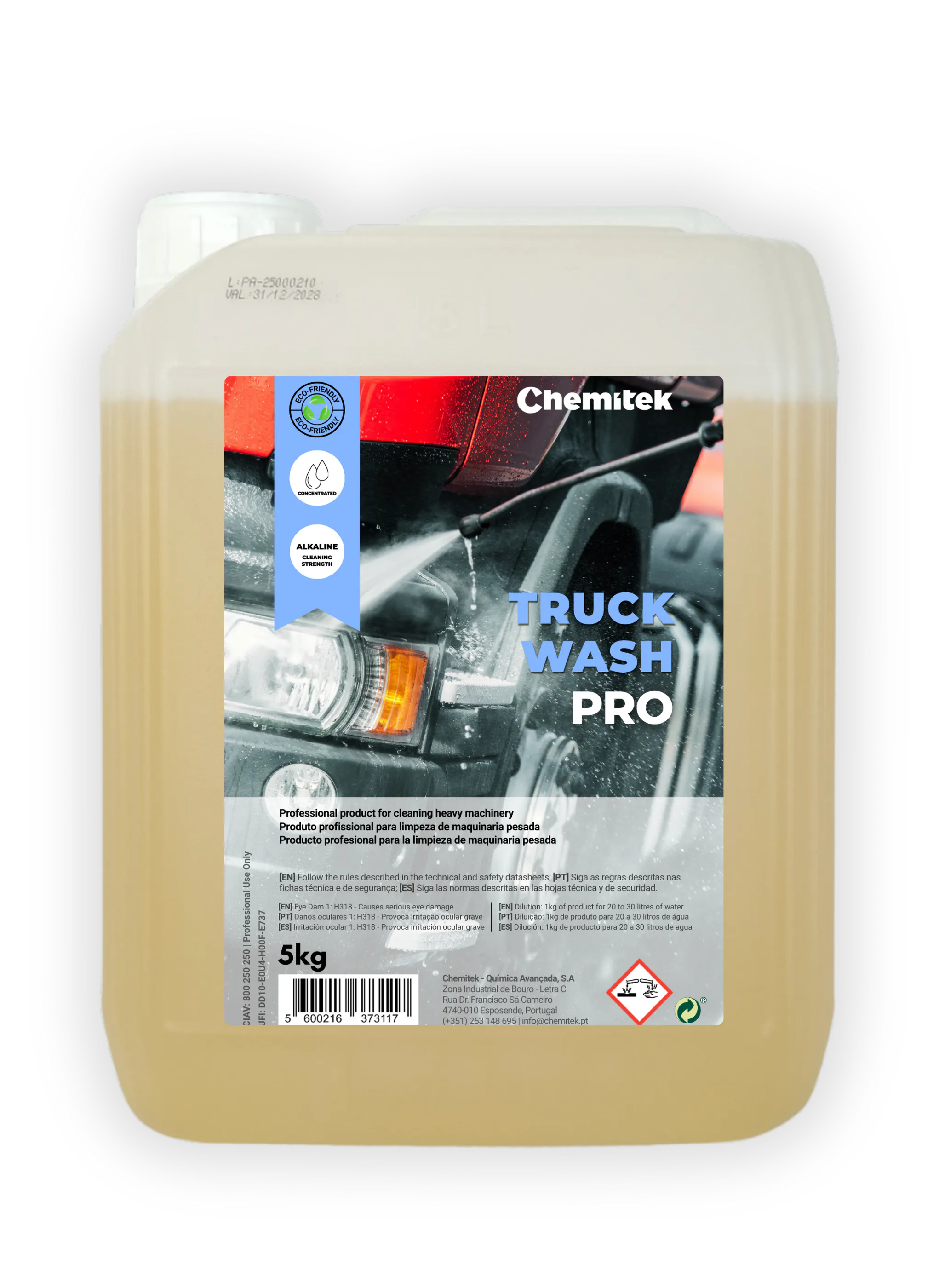 Alkaline product for professional use, for pre-washing of trucks, buses, heavy machinery and trains.